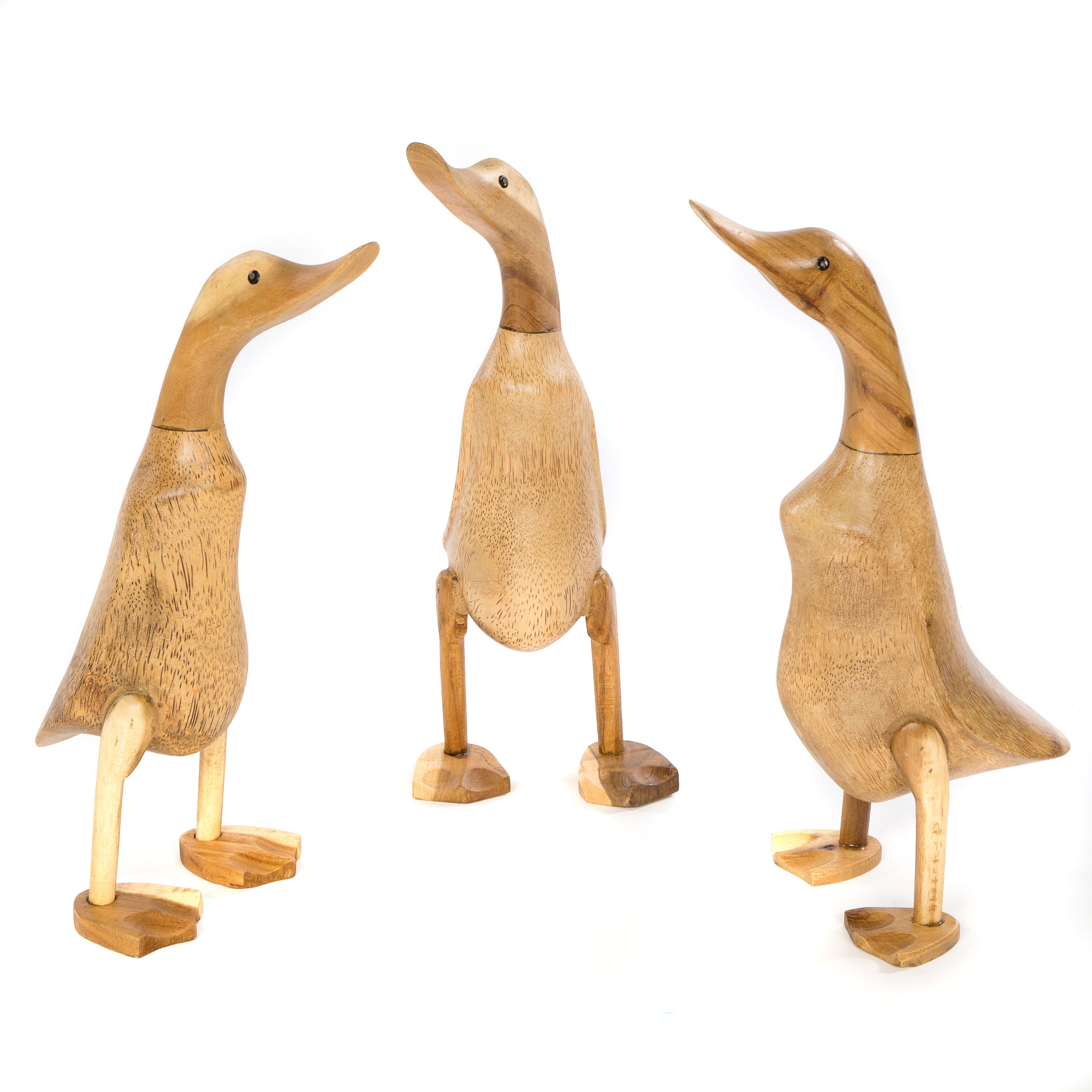 All our ducks are carved using recycled bamboo root and teak. We work with one family in Bali Indonesia that we have been working with for over 14 years.