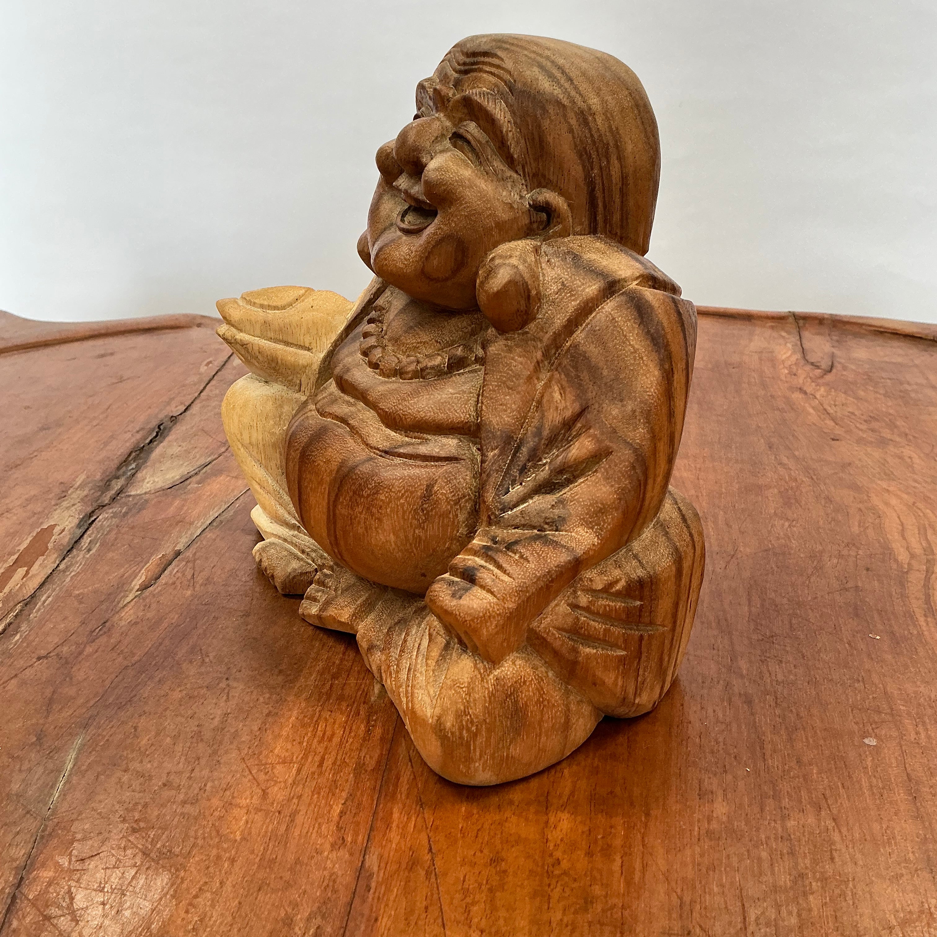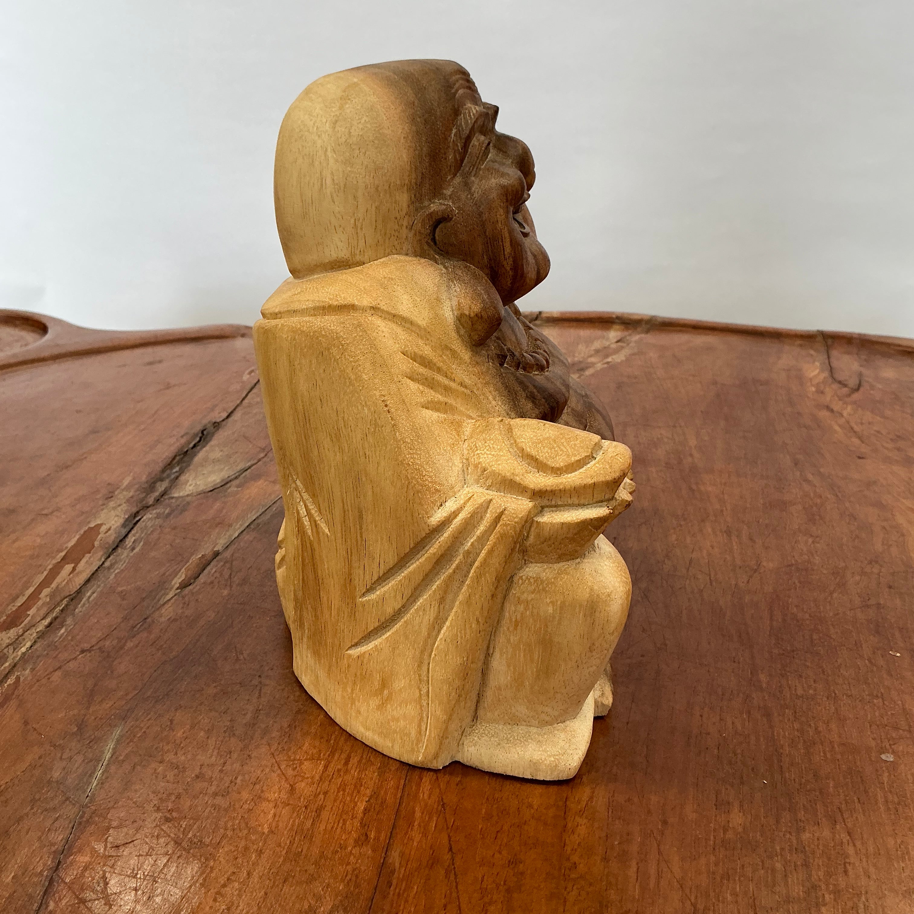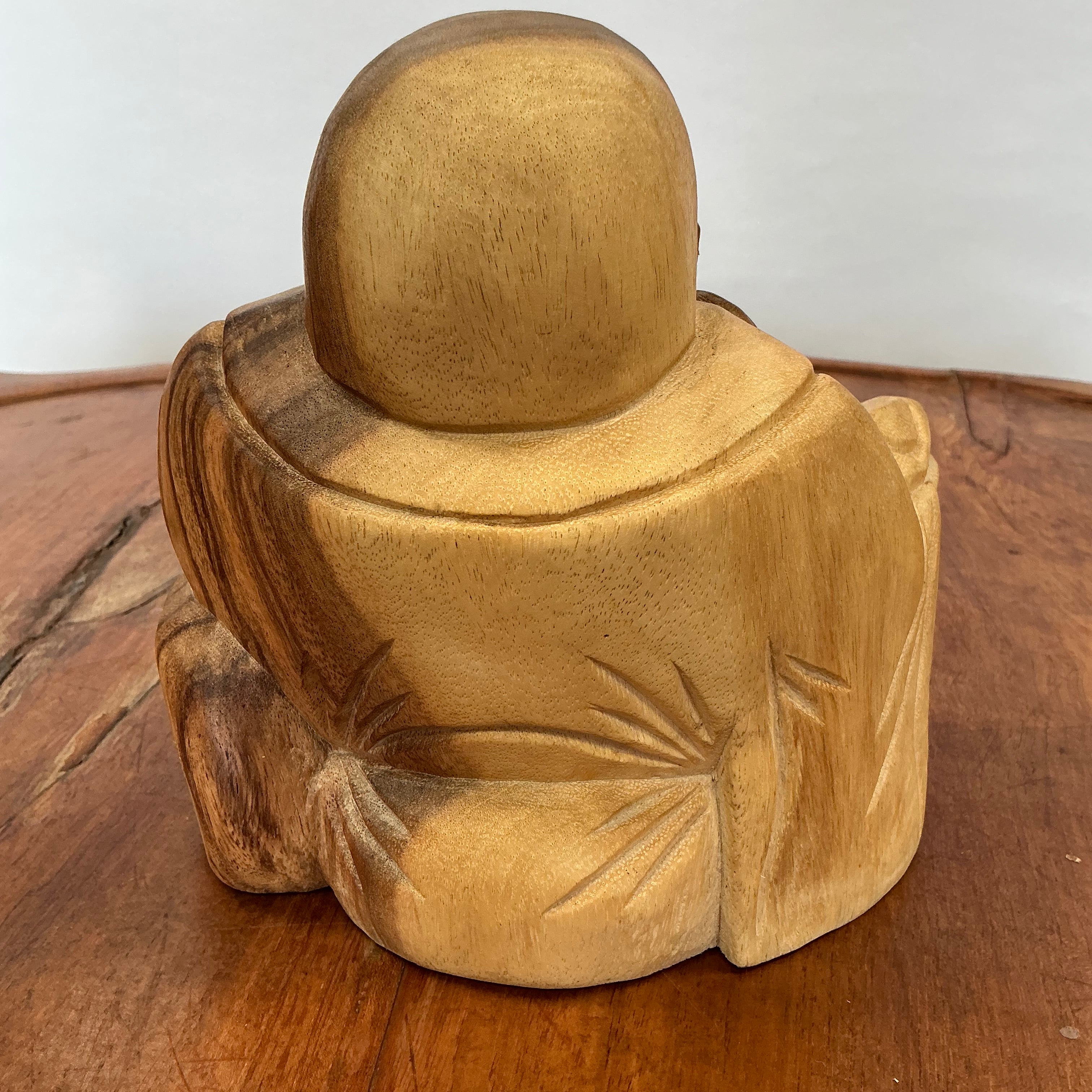 Sitting at approximately 20cm tall, this solid fair trade sitting buddha has a natural finish and is hand carved from suar wood by highly skilled Balinese craftsmen.