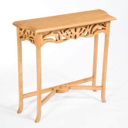 An ethically sourced fair trade Accent Mini Console Table - Light Finish. Exquisite hand carved detail and part of our Accent range of occasional furniture, it is crafted from environmentally friendly rubberwood by skilled artisans.