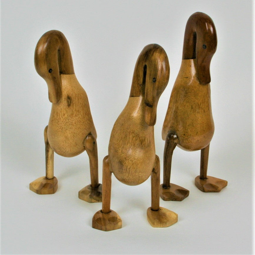 All our ducks are carved using recycled bamboo root and teak. We work with one family in Bali Indonesia that we have been working with for over 14 years