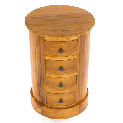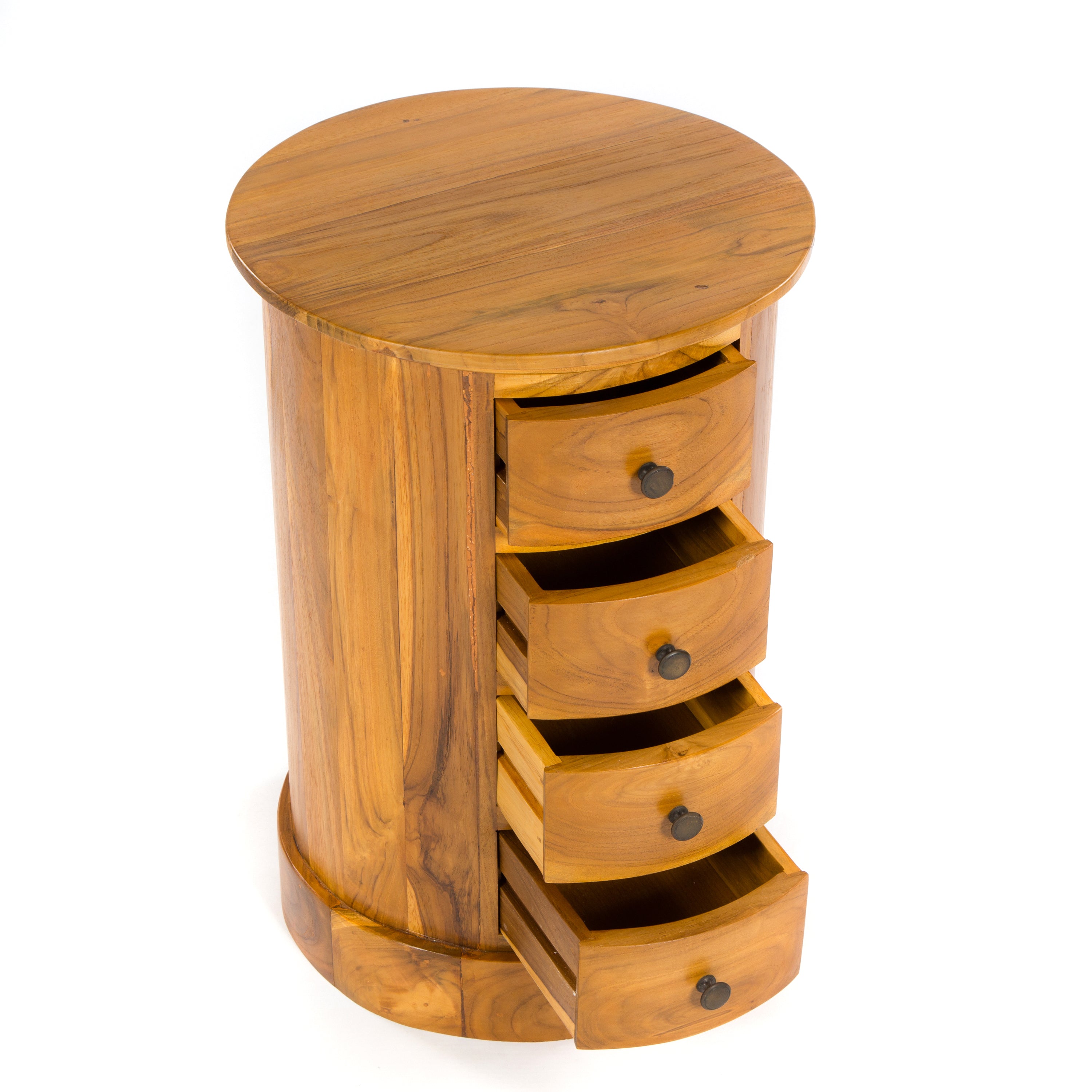 This beautiful four-drawer cylindrical storage unit celebrates both functionality and ethical craftsmanship.