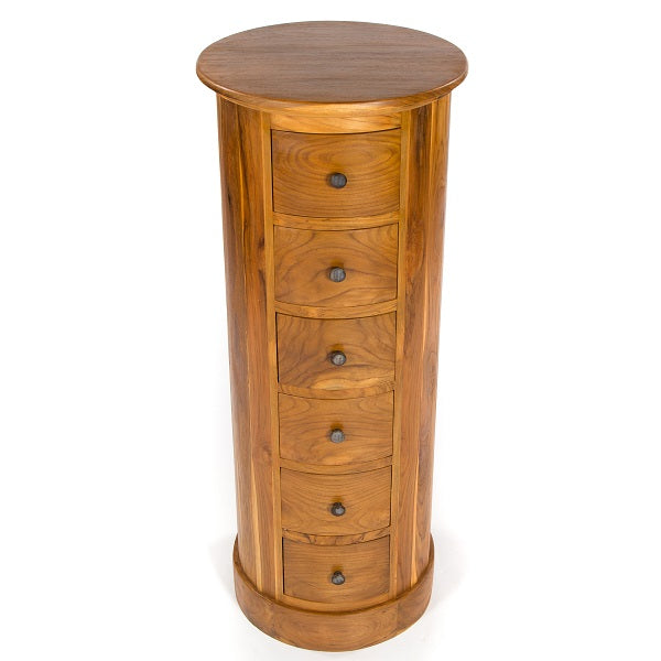This beautiful six-drawer cylindrical storage unit celebrates both functionality and ethical craftsmanship.